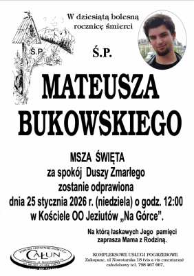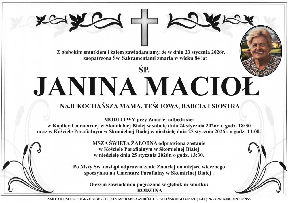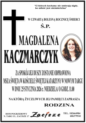 Podhale24.pl zastrzega sobie prawo do nie publikowania wspomnień, w szczególności tych nie związanych z profilem działu nekrologi, zawierających wulgaryzmy, wzywających do zachowań niezgodnych z prawem, obrażających osoby publiczne i prywatne, obrażających inne narodowości, rasy, religie itd, oraz te, bez możliwości telefonicznej lub mailowej weryfikacji ich autora.