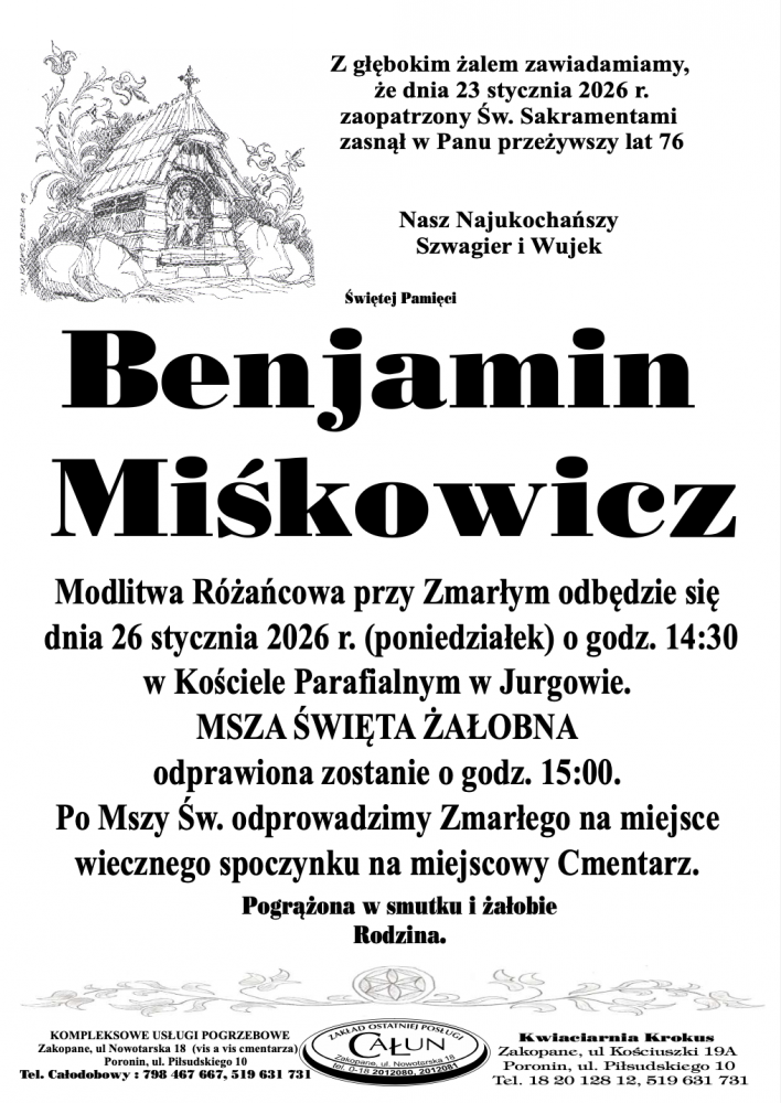 Benjamin Miśkowicz - Nekrologi - podhale24.pl