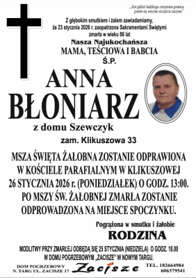 Podhale24.pl zastrzega sobie prawo do nie publikowania wspomnień, w szczególności tych nie związanych z profilem działu nekrologi, zawierających wulgaryzmy, wzywających do zachowań niezgodnych z prawem, obrażających osoby publiczne i prywatne, obrażających inne narodowości, rasy, religie itd, oraz te, bez możliwości telefonicznej lub mailowej weryfikacji ich autora.