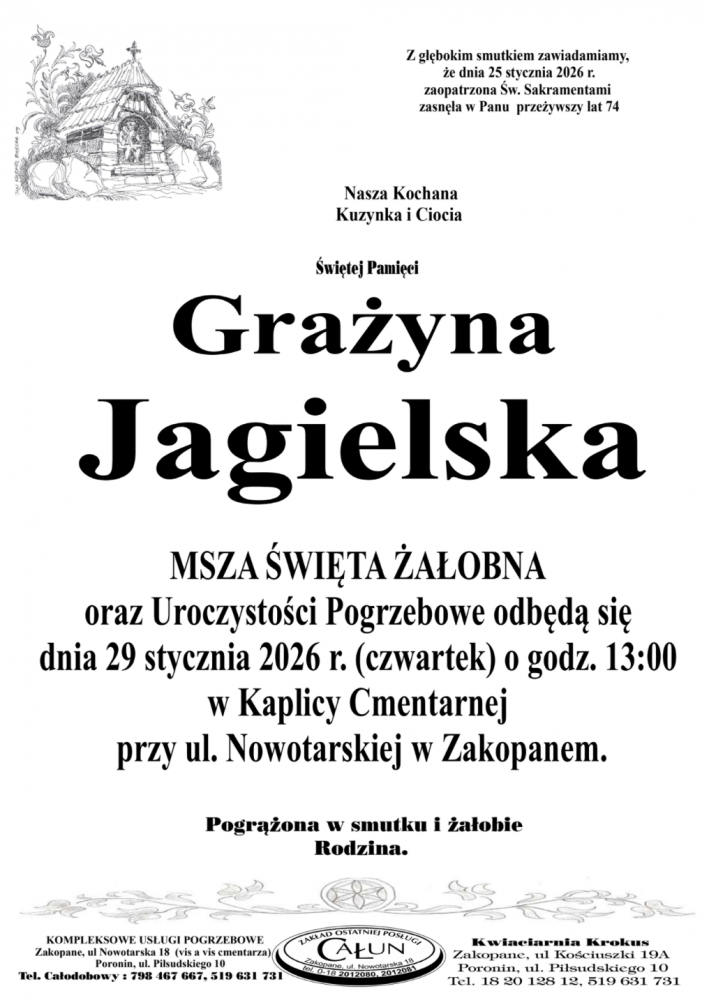Grażyna Jagielska - Nekrologi - podhale24.pl