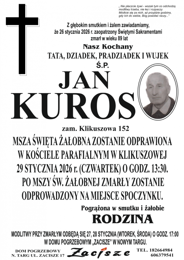 Jan Kuros - Nekrologi - podhale24.pl
