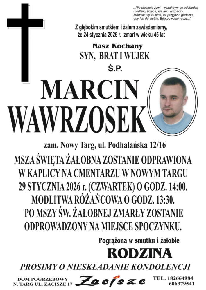 Marcin Wrzosek - Nekrologi - podhale24.pl