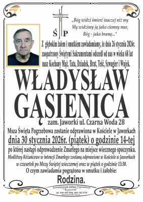Podhale24.pl zastrzega sobie prawo do nie publikowania wspomnień, w szczególności tych nie związanych z profilem działu nekrologi, zawierających wulgaryzmy, wzywających do zachowań niezgodnych z prawem, obrażających osoby publiczne i prywatne, obrażających inne narodowości, rasy, religie itd, oraz te, bez możliwości telefonicznej lub mailowej weryfikacji ich autora.