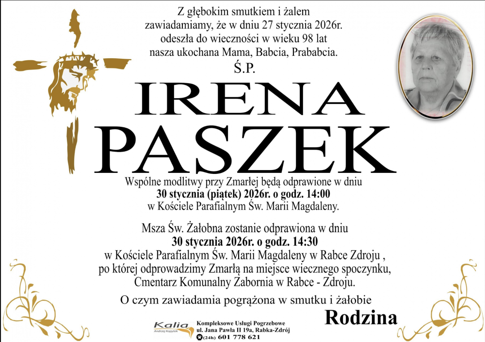 Podhale24.pl zastrzega sobie prawo do nie publikowania wspomnień, w szczególności tych nie związanych z profilem działu nekrologi, zawierających wulgaryzmy, wzywających do zachowań niezgodnych z prawem, obrażających osoby publiczne i prywatne, obrażających inne narodowości, rasy, religie itd, oraz te, bez możliwości telefonicznej lub mailowej weryfikacji ich autora.