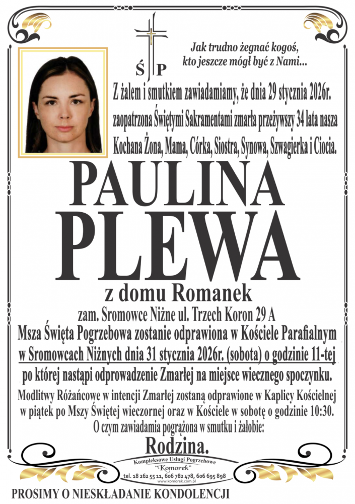 Podhale24.pl zastrzega sobie prawo do nie publikowania wspomnień, w szczególności tych nie związanych z profilem działu nekrologi, zawierających wulgaryzmy, wzywających do zachowań niezgodnych z prawem, obrażających osoby publiczne i prywatne, obrażających inne narodowości, rasy, religie itd, oraz te, bez możliwości telefonicznej lub mailowej weryfikacji ich autora.