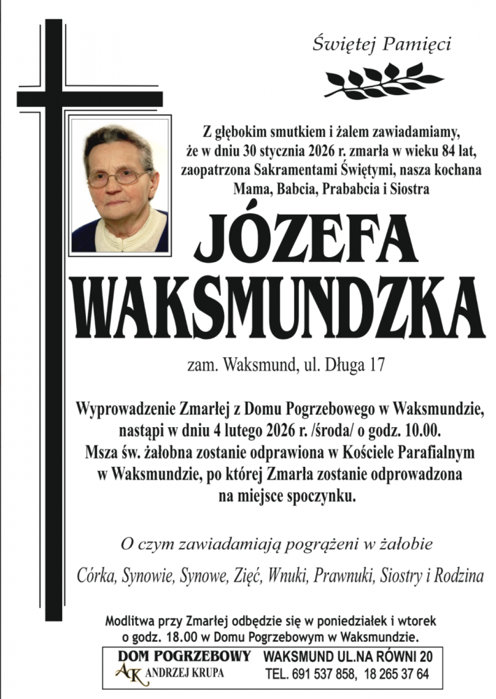 Józefa Waksmundzka - Nekrologi - podhale24.pl