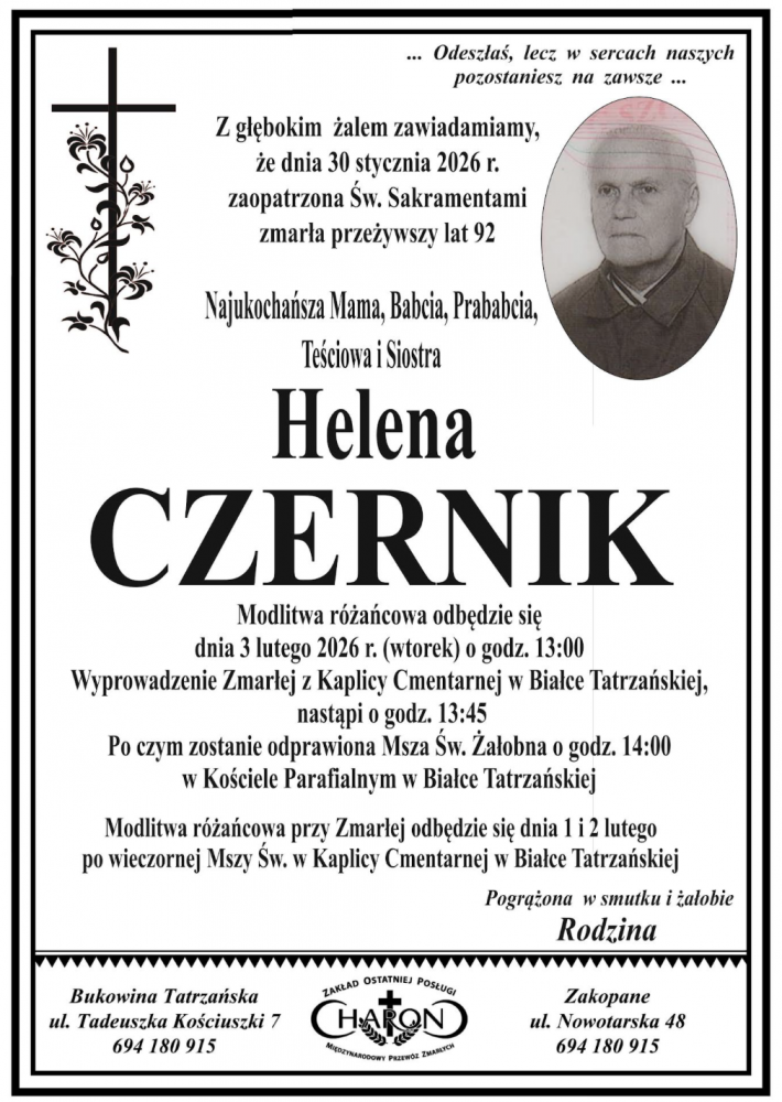 Helena Czernik - Nekrologi - podhale24.pl
