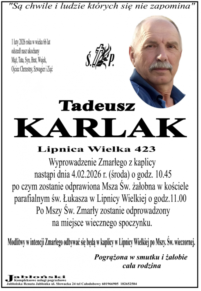 Tadeusz Karlak - Nekrologi - podhale24.pl