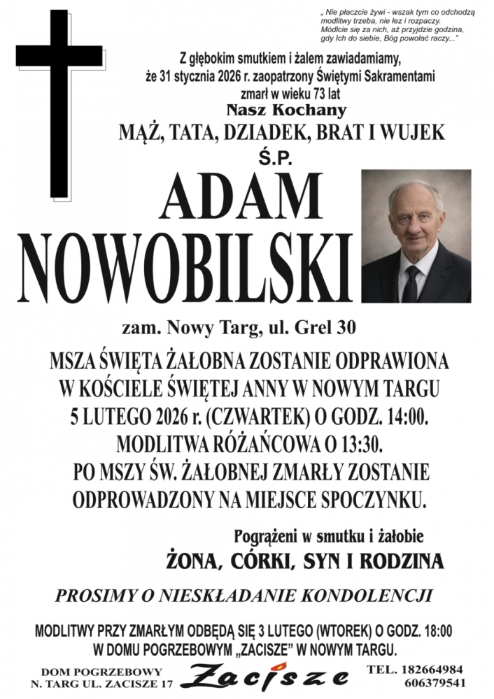 Adam Nowobilski - Nekrologi - podhale24.pl