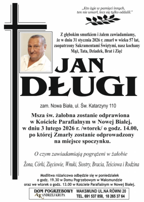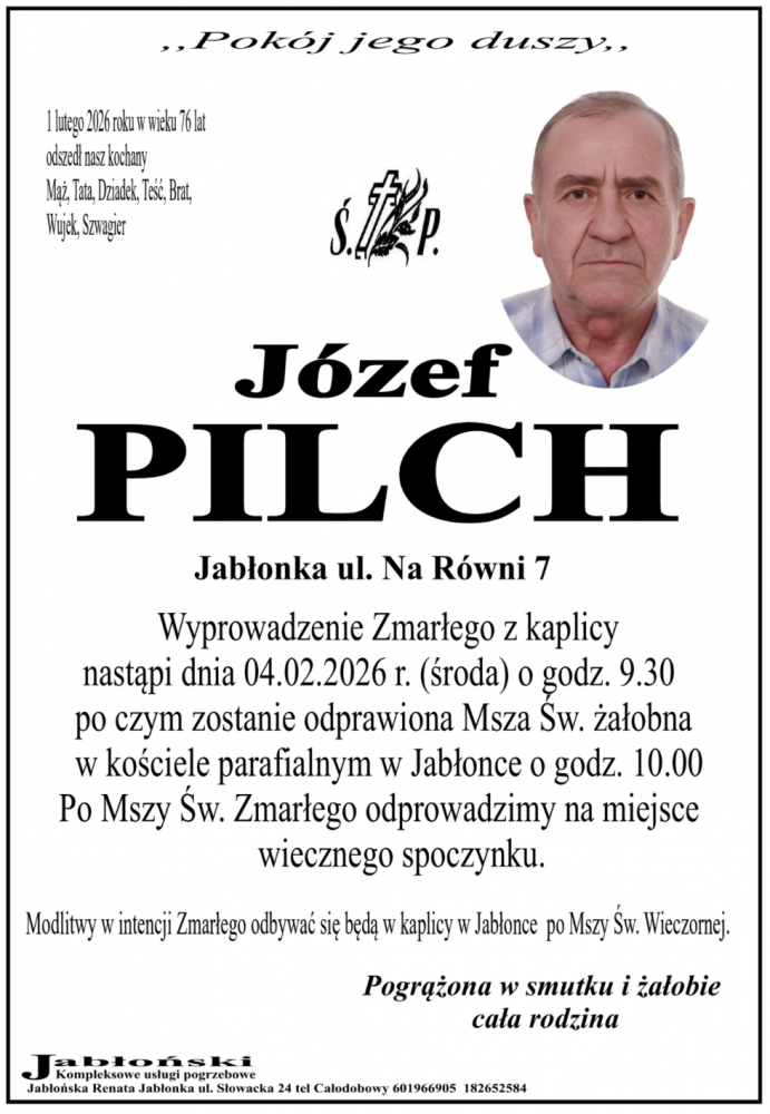 Podhale24.pl zastrzega sobie prawo do nie publikowania wspomnień, w szczególności tych nie związanych z profilem działu nekrologi, zawierających wulgaryzmy, wzywających do zachowań niezgodnych z prawem, obrażających osoby publiczne i prywatne, obrażających inne narodowości, rasy, religie itd, oraz te, bez możliwości telefonicznej lub mailowej weryfikacji ich autora.