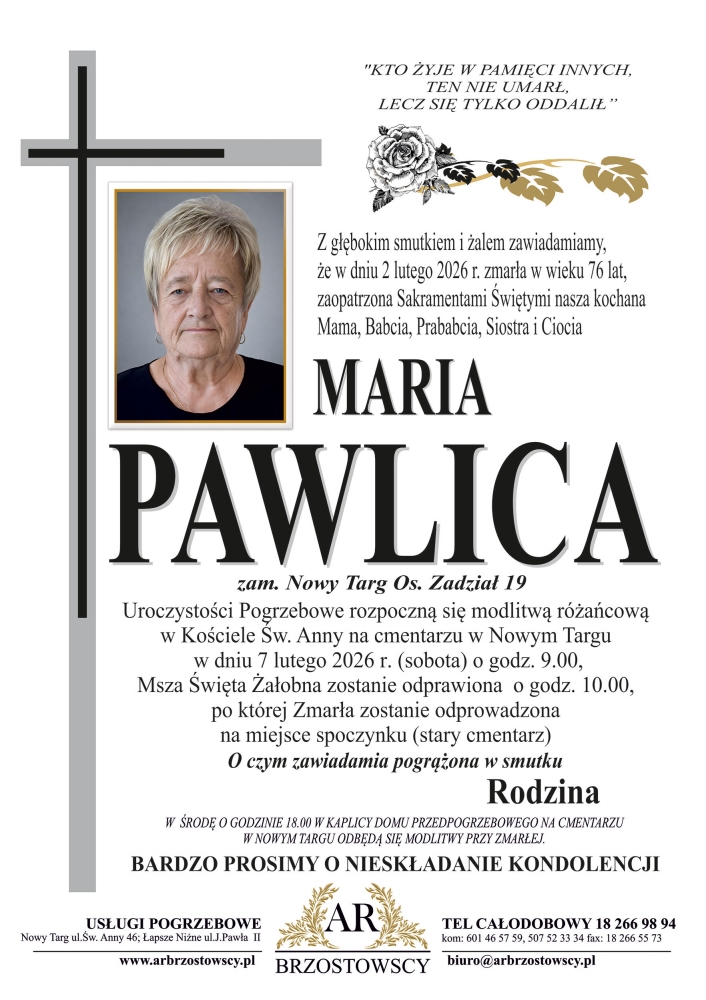 Maria Pawlica - Nekrologi - podhale24.pl