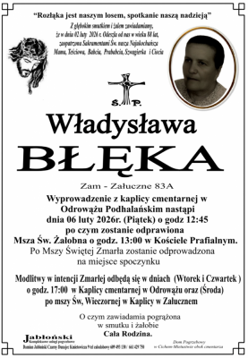 Podhale24.pl zastrzega sobie prawo do nie publikowania wspomnień, w szczególności tych nie związanych z profilem działu nekrologi, zawierających wulgaryzmy, wzywających do zachowań niezgodnych z prawem, obrażających osoby publiczne i prywatne, obrażających inne narodowości, rasy, religie itd, oraz te, bez możliwości telefonicznej lub mailowej weryfikacji ich autora.