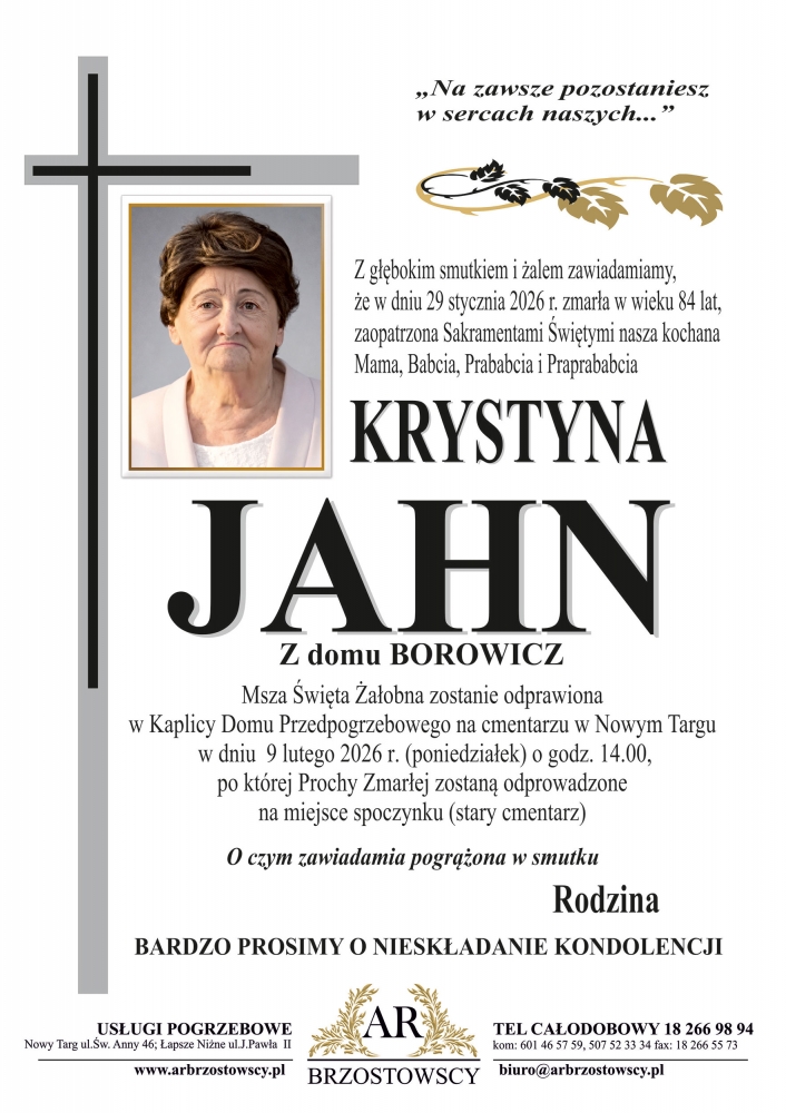 Krystyna Jahn - Nekrologi - podhale24.pl