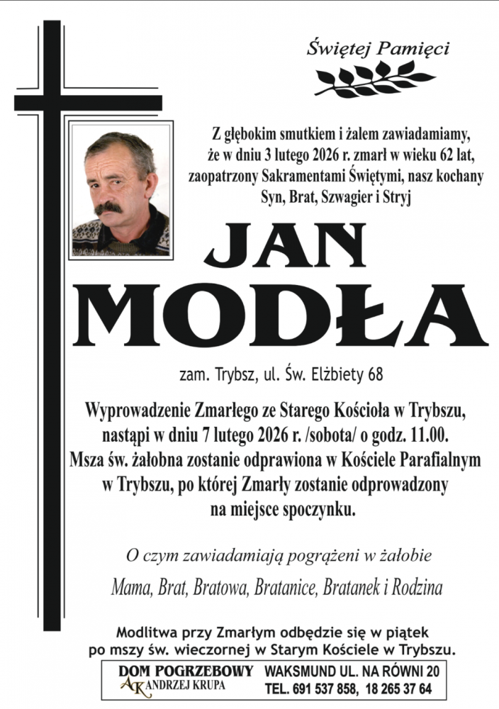 Podhale24.pl zastrzega sobie prawo do nie publikowania wspomnień, w szczególności tych nie związanych z profilem działu nekrologi, zawierających wulgaryzmy, wzywających do zachowań niezgodnych z prawem, obrażających osoby publiczne i prywatne, obrażających inne narodowości, rasy, religie itd, oraz te, bez możliwości telefonicznej lub mailowej weryfikacji ich autora.
