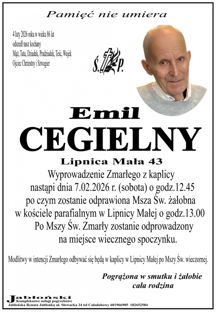 Podhale24.pl zastrzega sobie prawo do nie publikowania wspomnień, w szczególności tych nie związanych z profilem działu nekrologi, zawierających wulgaryzmy, wzywających do zachowań niezgodnych z prawem, obrażających osoby publiczne i prywatne, obrażających inne narodowości, rasy, religie itd, oraz te, bez możliwości telefonicznej lub mailowej weryfikacji ich autora.