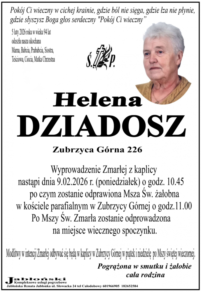 Helena Dziadosz - Nekrologi - podhale24.pl