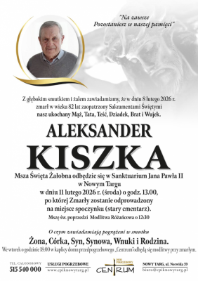 Podhale24.pl zastrzega sobie prawo do nie publikowania wspomnień, w szczególności tych nie związanych z profilem działu nekrologi, zawierających wulgaryzmy, wzywających do zachowań niezgodnych z prawem, obrażających osoby publiczne i prywatne, obrażających inne narodowości, rasy, religie itd, oraz te, bez możliwości telefonicznej lub mailowej weryfikacji ich autora.