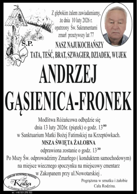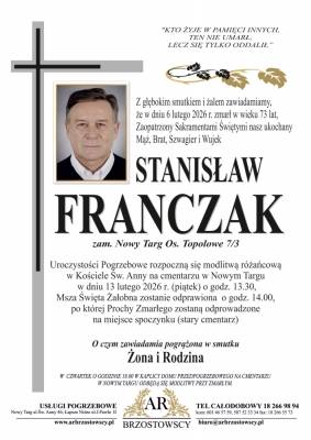 Podhale24.pl zastrzega sobie prawo do nie publikowania wspomnień, w szczególności tych nie związanych z profilem działu nekrologi, zawierających wulgaryzmy, wzywających do zachowań niezgodnych z prawem, obrażających osoby publiczne i prywatne, obrażających inne narodowości, rasy, religie itd, oraz te, bez możliwości telefonicznej lub mailowej weryfikacji ich autora.