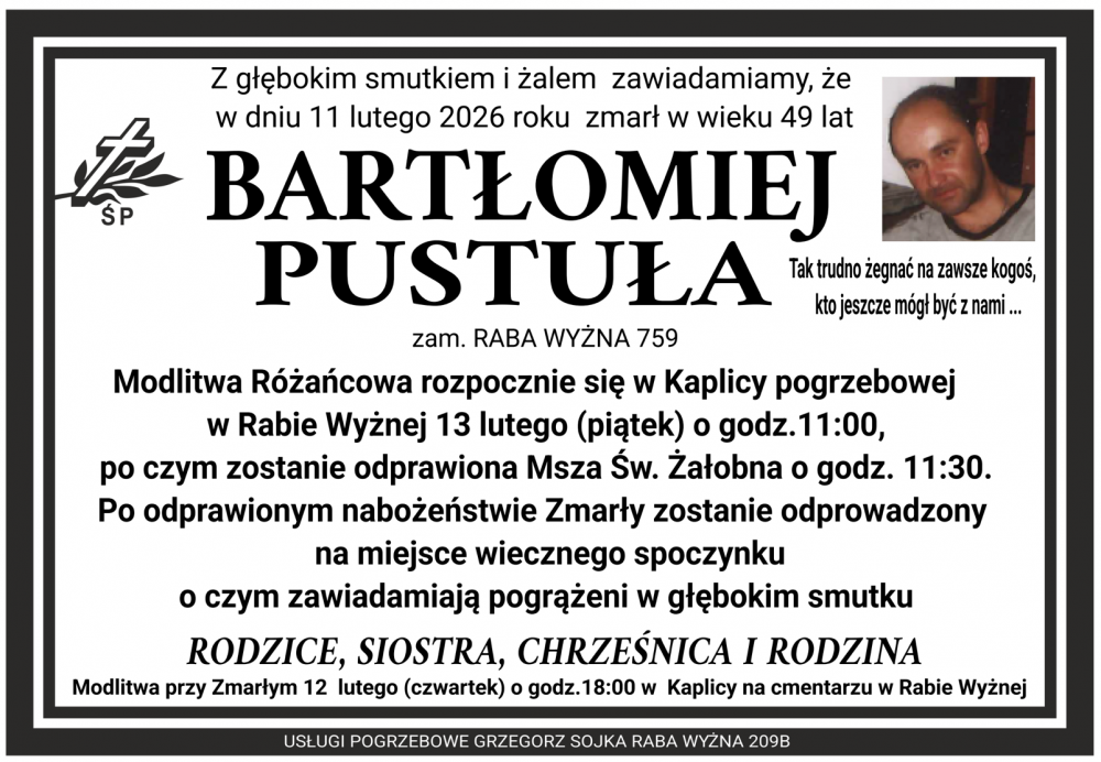 Bartłomiej Pustuła - Nekrologi - podhale24.pl