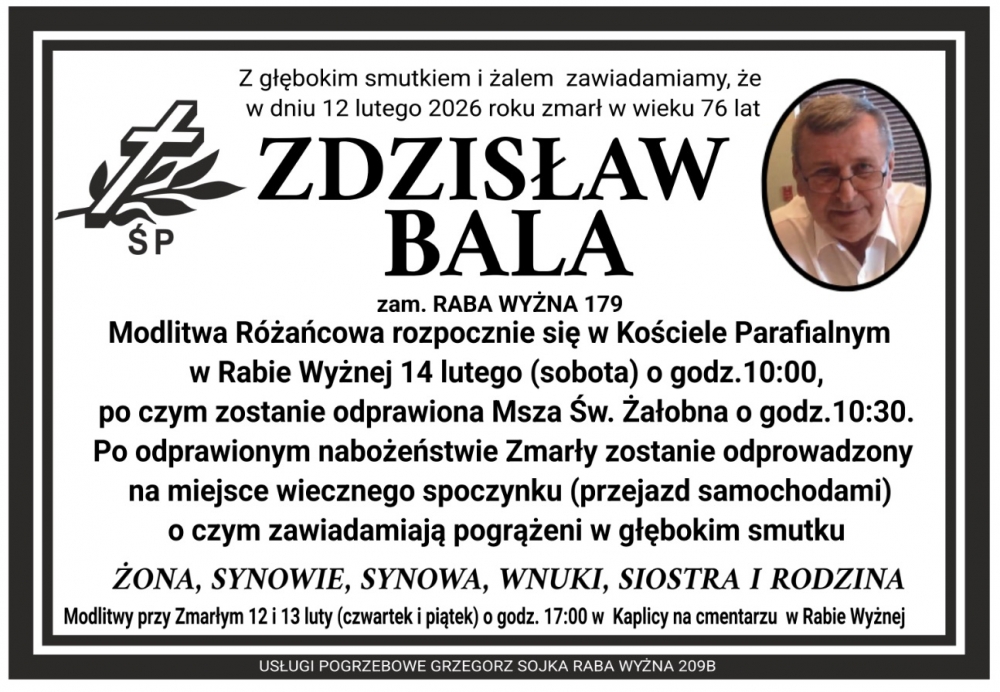 Zdzisław Bala - Nekrologi - podhale24.pl