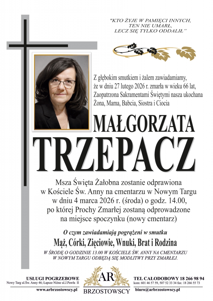 Małgorzata Trzepacz - Nekrologi - podhale24.pl