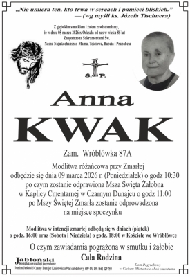 Podhale24.pl zastrzega sobie prawo do nie publikowania wspomnień, w szczególności tych nie związanych z profilem działu nekrologi, zawierających wulgaryzmy, wzywających do zachowań niezgodnych z prawem, obrażających osoby publiczne i prywatne, obrażających inne narodowości, rasy, religie itd, oraz te, bez możliwości telefonicznej lub mailowej weryfikacji ich autora.