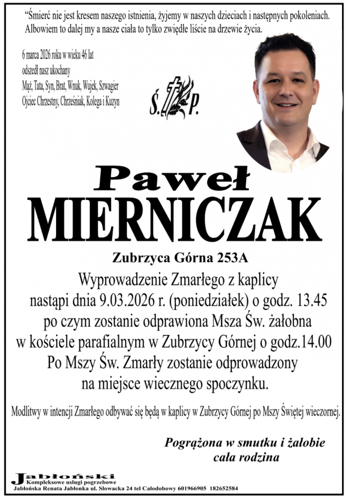 Paweł Mierniczak - Nekrologi - podhale24.pl