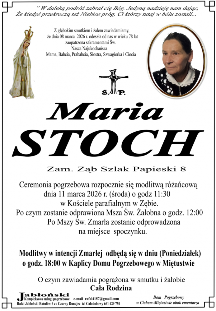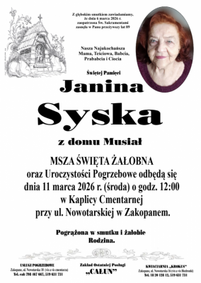 Podhale24.pl zastrzega sobie prawo do nie publikowania wspomnień, w szczególności tych nie związanych z profilem działu nekrologi, zawierających wulgaryzmy, wzywających do zachowań niezgodnych z prawem, obrażających osoby publiczne i prywatne, obrażających inne narodowości, rasy, religie itd, oraz te, bez możliwości telefonicznej lub mailowej weryfikacji ich autora.