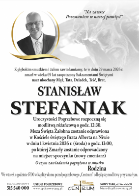 Podhale24.pl zastrzega sobie prawo do nie publikowania wspomnień, w szczególności tych nie związanych z profilem działu nekrologi, zawierających wulgaryzmy, wzywających do zachowań niezgodnych z prawem, obrażających osoby publiczne i prywatne, obrażających inne narodowości, rasy, religie itd, oraz te, bez możliwości telefonicznej lub mailowej weryfikacji ich autora.