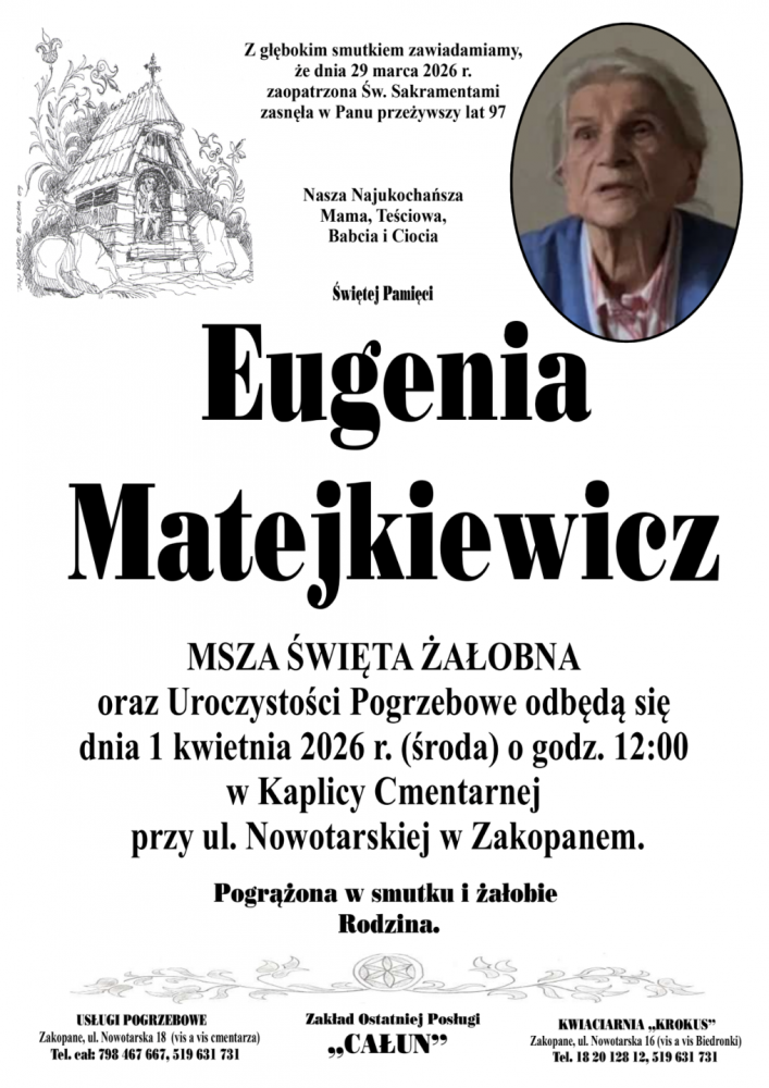 Eugenia Matejkiewicz - Nekrologi - podhale24.pl