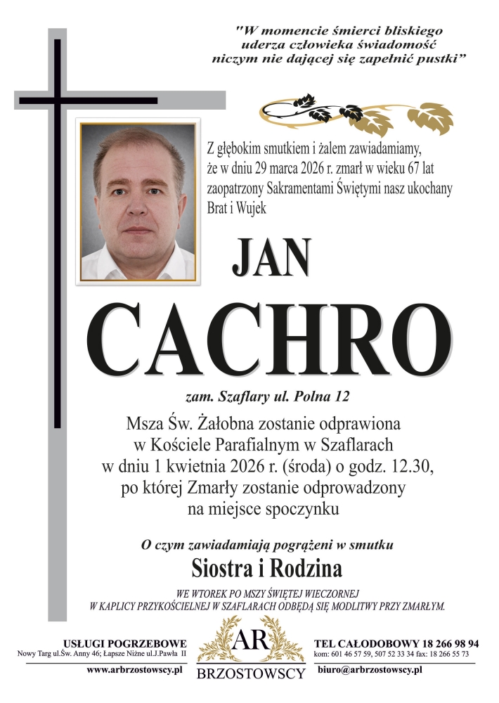 Podhale24.pl zastrzega sobie prawo do nie publikowania wspomnień, w szczególności tych nie związanych z profilem działu nekrologi, zawierających wulgaryzmy, wzywających do zachowań niezgodnych z prawem, obrażających osoby publiczne i prywatne, obrażających inne narodowości, rasy, religie itd, oraz te, bez możliwości telefonicznej lub mailowej weryfikacji ich autora.