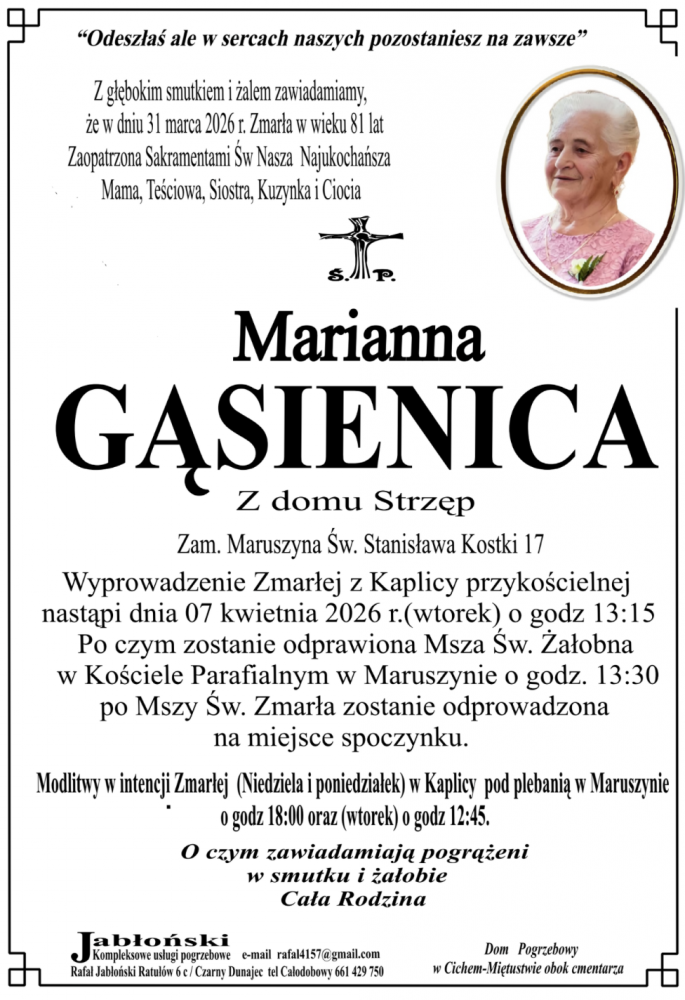 Marianna Gąsienica - Nekrologi - podhale24.pl