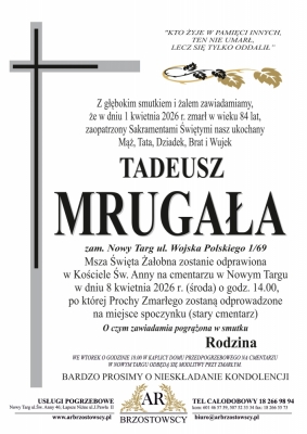 Podhale24.pl zastrzega sobie prawo do nie publikowania wspomnień, w szczególności tych nie związanych z profilem działu nekrologi, zawierających wulgaryzmy, wzywających do zachowań niezgodnych z prawem, obrażających osoby publiczne i prywatne, obrażających inne narodowości, rasy, religie itd, oraz te, bez możliwości telefonicznej lub mailowej weryfikacji ich autora.
