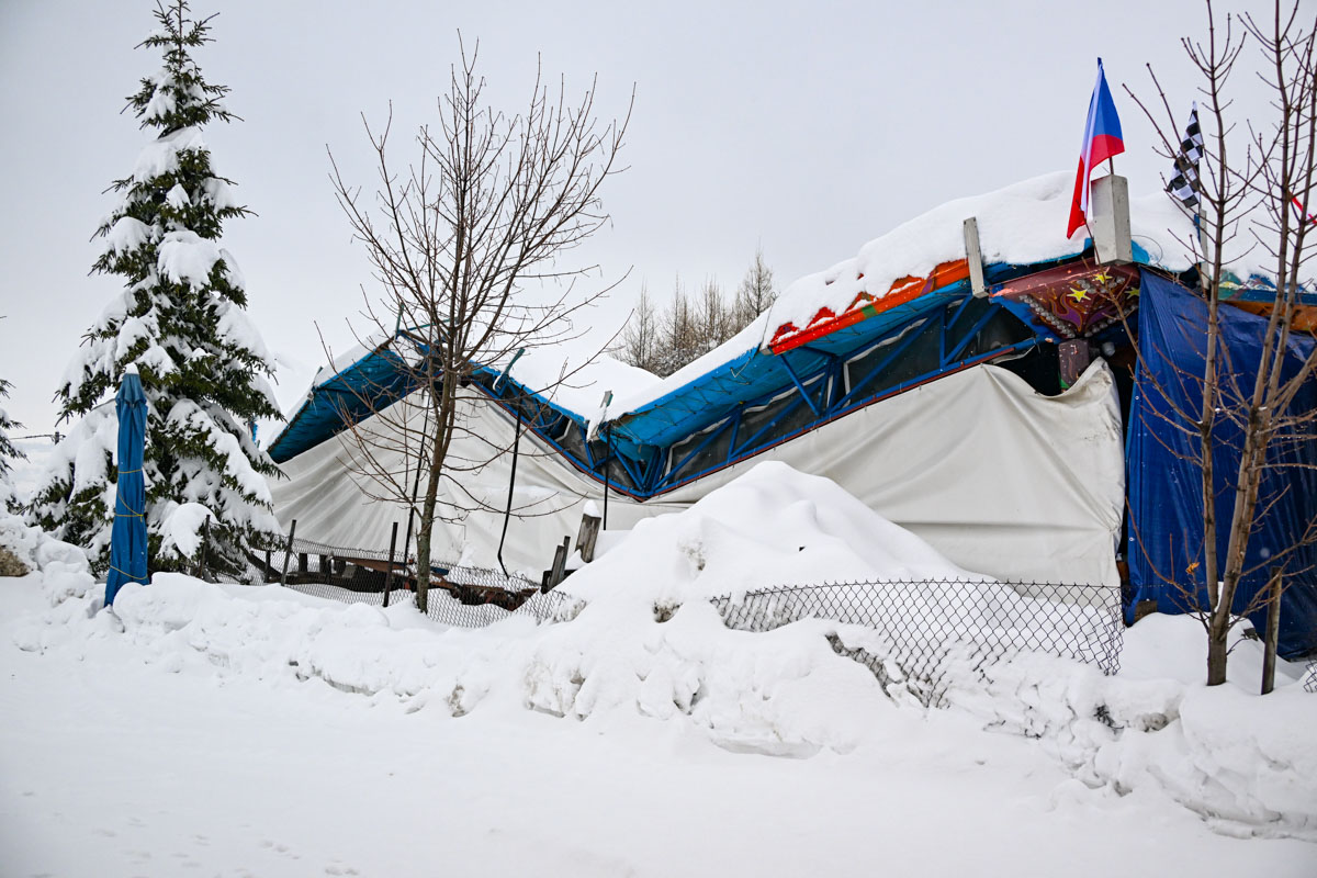 Duża ilość ciężkiego śniegu wyrządziła także sporo skód. Część daszków przy straganach uległa zniszczeniom. Największe szkody atak zimy wyrządził przy jednej z rozrywkowych trakcji. Ciężkie masy śniegu pogięły metalową konstrukcję dachu autodromu. Elektryczne samochodziki oraz płyta, po której jeżdżą zostały osłonięte plandekami znad których wystaje pogięta konstrukcja dachu.