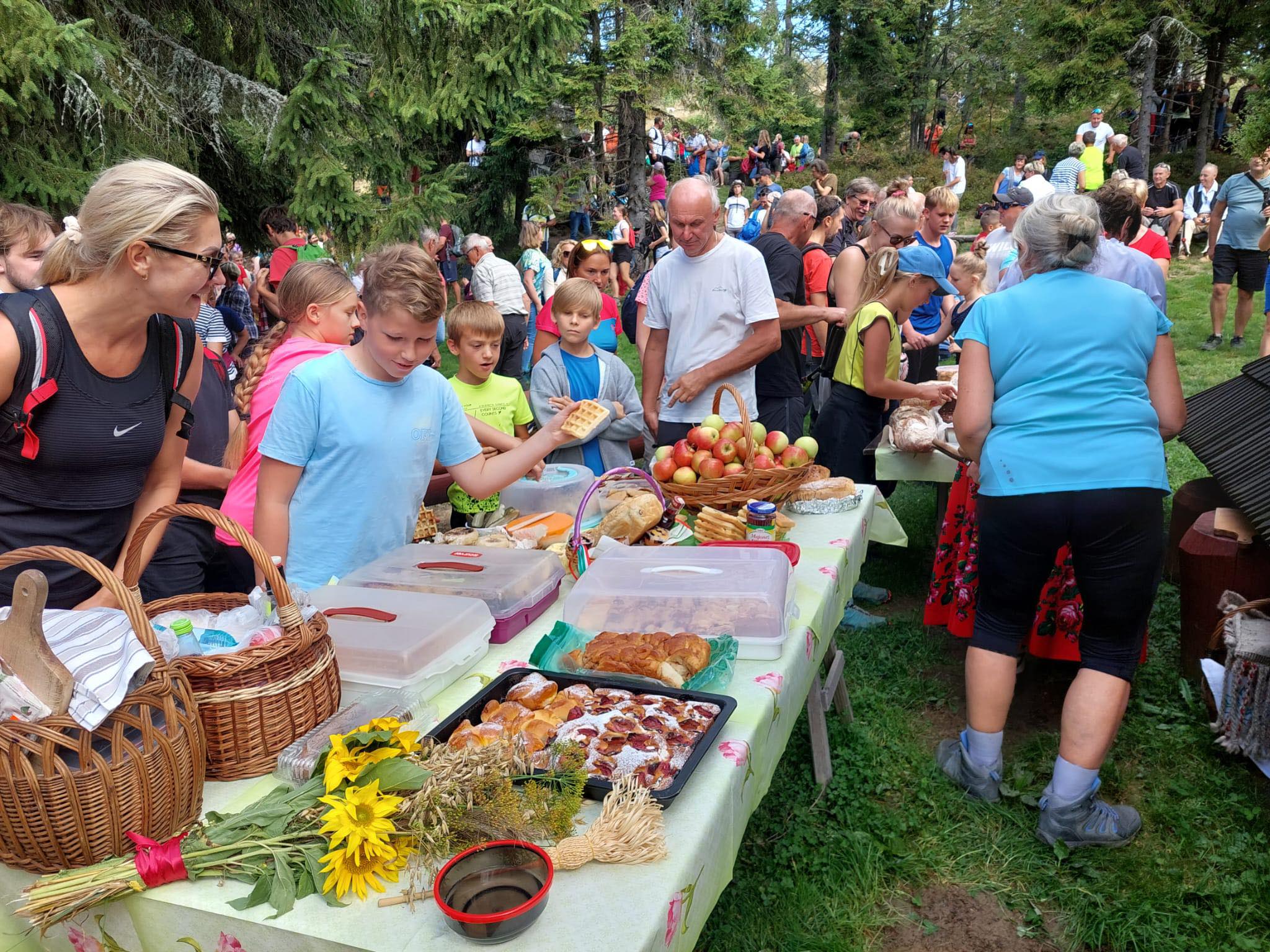 Chleby, sery, ciasta, owoce i przetwory przynieśli turyści oraz mieszkańcy okolicznych przysiółków.