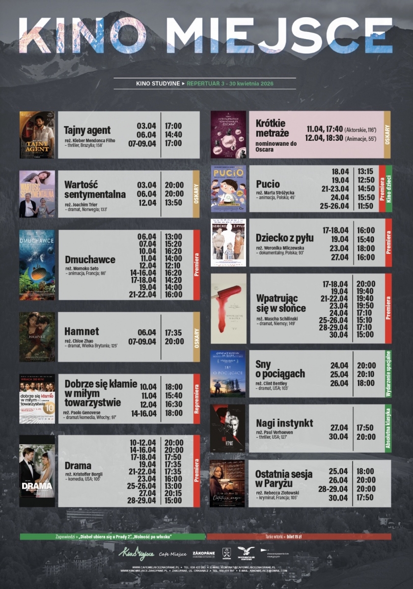 Zakopiańskie Kino Miejsce zaprosza na seanse w kwietniu