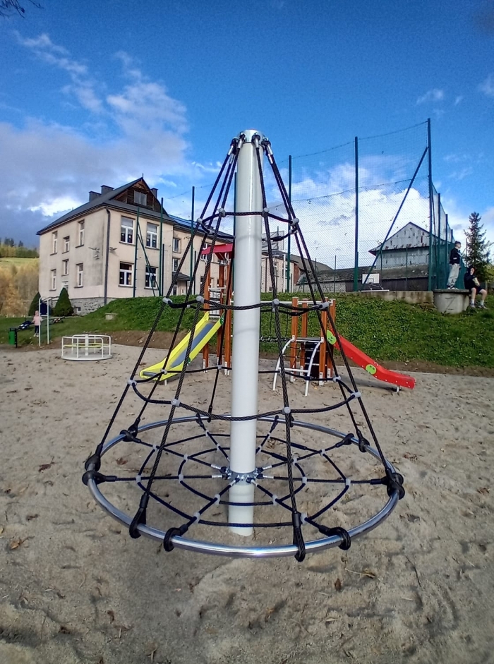 Zamontowano piaskownicę, zestaw placu zabaw, bujaki, huśtawkę, karuzelę, linarium, ławki parkowe i kosze na śmieci, lampy solarne, wykonano plantowanie terenu oraz bezpieczną nawierzchnię placu zabaw.