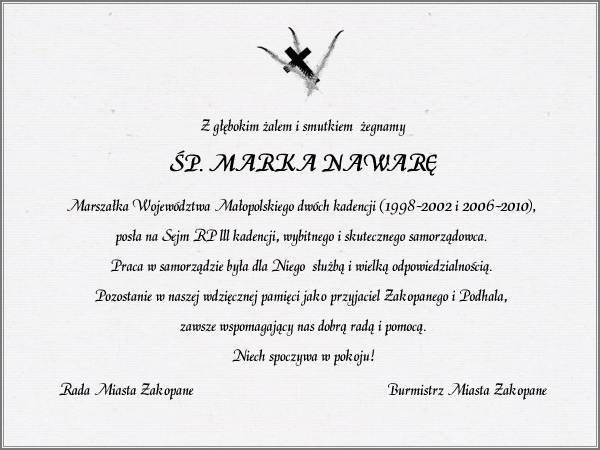 Marek Nawara - Zakopane - Nekrologi - podhale24.pl