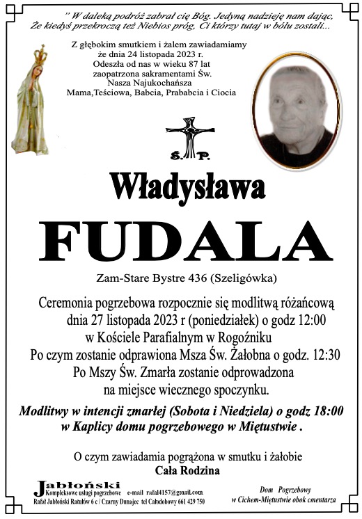 Władysława Fudala - Nekrologi - podhale24.pl