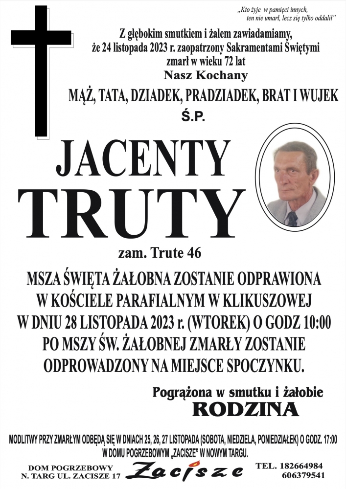 Podhale24.pl zastrzega sobie prawo do nie publikowania wspomnień, w szczególności tych nie związanych z profilem działu nekrologi, zawierających wulgaryzmy, wzywających do zachowań niezgodnych z prawem, obrażających osoby publiczne i prywatne, obrażających inne narodowości, rasy, religie itd, oraz te, bez możliwości telefonicznej lub mailowej weryfikacji ich autora.