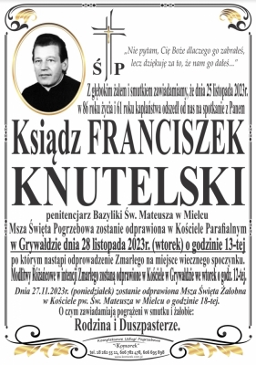 Podhale24.pl zastrzega sobie prawo do nie publikowania wspomnień, w szczególności tych nie związanych z profilem działu nekrologi, zawierających wulgaryzmy, wzywających do zachowań niezgodnych z prawem, obrażających osoby publiczne i prywatne, obrażających inne narodowości, rasy, religie itd, oraz te, bez możliwości telefonicznej lub mailowej weryfikacji ich autora.