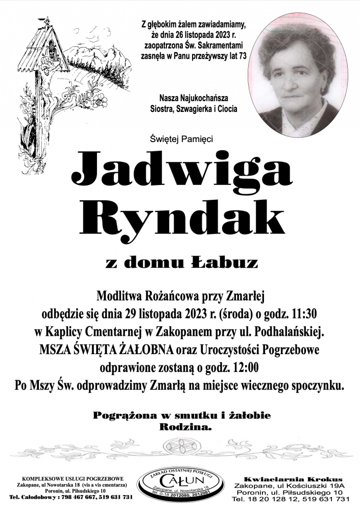 Jadwiga Ryndak - Nekrologi - podhale24.pl