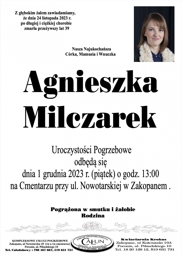 Agnieszka Milczarek - Nekrologi - podhale24.pl