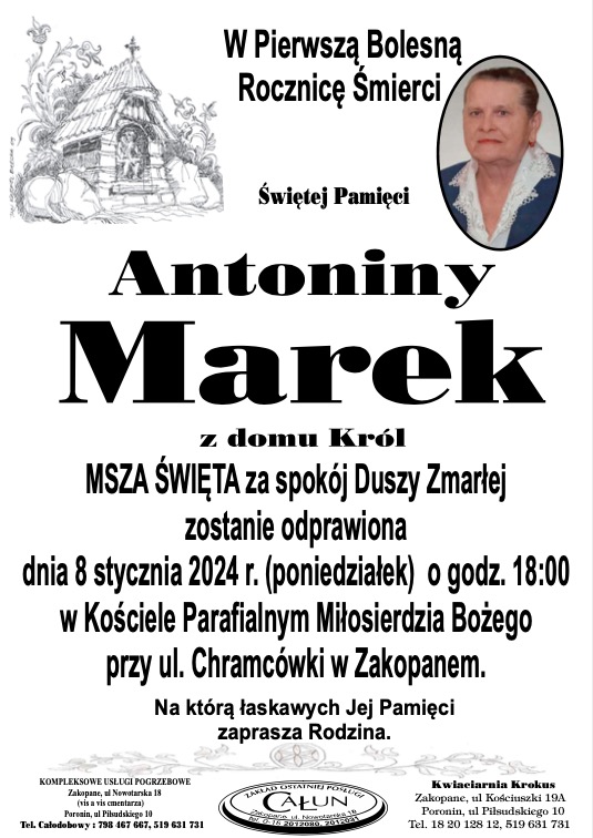 Antonina Marek - Nekrologi - podhale24.pl