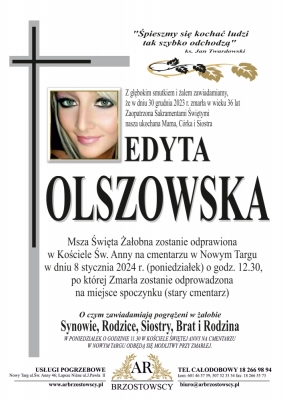 Podhale24.pl zastrzega sobie prawo do nie publikowania wspomnień, w szczególności tych nie związanych z profilem działu nekrologi, zawierających wulgaryzmy, wzywających do zachowań niezgodnych z prawem, obrażających osoby publiczne i prywatne, obrażających inne narodowości, rasy, religie itd, oraz te, bez możliwości telefonicznej lub mailowej weryfikacji ich autora.
