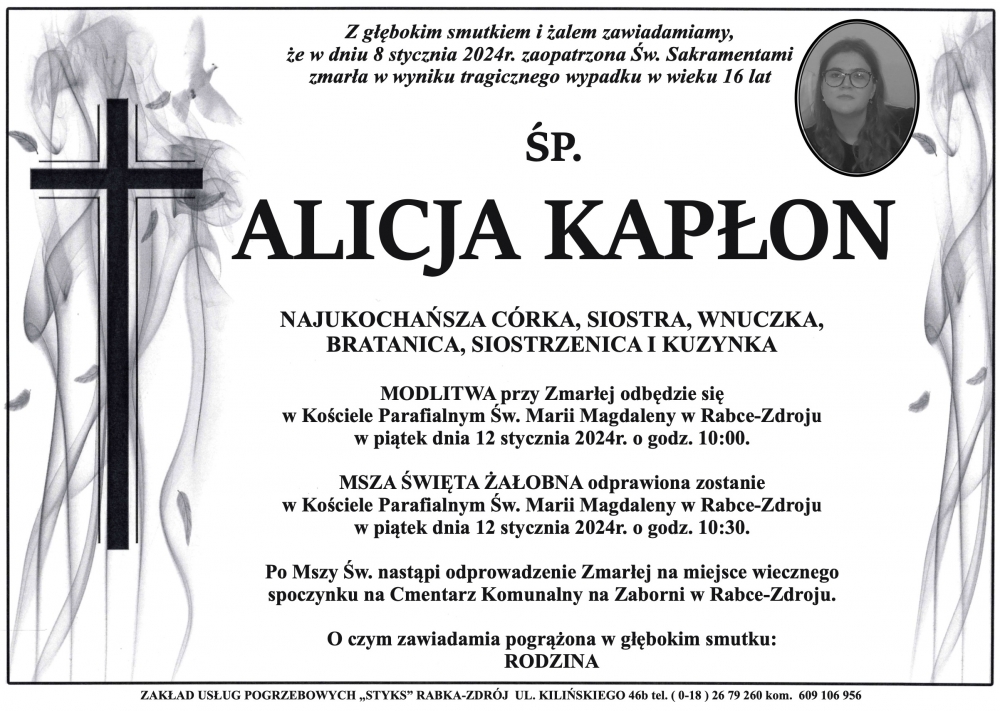 Alicja Kapłon - Nekrologi - podhale24.pl