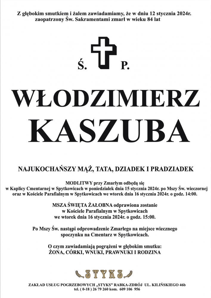 Włodzimierz Kaszuba - Nekrologi - podhale24.pl