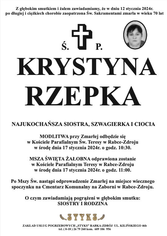 Krystyna Rzepka - Nekrologi - podhale24.pl