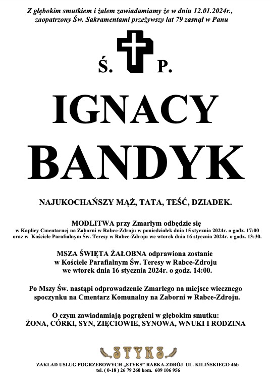 Ignacy Bandyk - Nekrologi - podhale24.pl