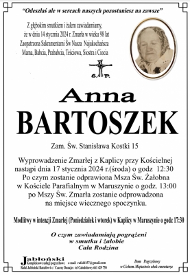 Podhale24.pl zastrzega sobie prawo do nie publikowania wspomnień, w szczególności tych nie związanych z profilem działu nekrologi, zawierających wulgaryzmy, wzywających do zachowań niezgodnych z prawem, obrażających osoby publiczne i prywatne, obrażających inne narodowości, rasy, religie itd, oraz te, bez możliwości telefonicznej lub mailowej weryfikacji ich autora.